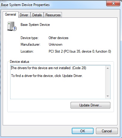 Base System Device doesnt have a driver Not fixed There is no driver installed for Base System Device. To solve the problem we can just update the driver in Device Manager or re-install the device driver if you want. PCI System Peripheral Unknown This Device Has a Problem. In the device manager I have listing of no drivers for Base System Device under other devices. Update or Update Now. I also googled the problem and googled the vendor 10b5 and the device 8609 and all that I get is PEX 8609 8-lane 8-Port PCI Express Gen 2 50 GTs Switch with DMA Any help would be appreciated. XPS 16 1645 Base System Device. Base System Device drivers Missing in Device Manager of IBM HS23 Blade. Install the latest driver for the device.