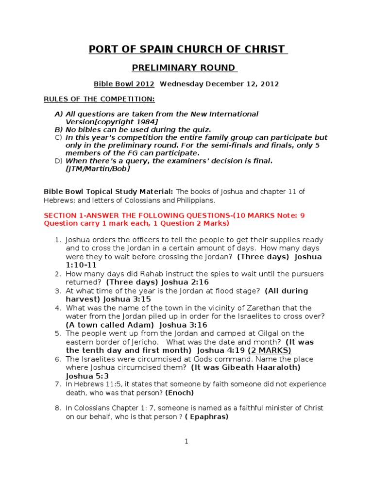 Bible quiz questions and answers joshua. A team of editors takes feedback from our visitors to keep trivia as up to date and as accurate as possible. The answers can be obtained by completing the quiz online with the option of emailing the Bible quiz questions and answers to you afterwards. Who was Joshuas father.