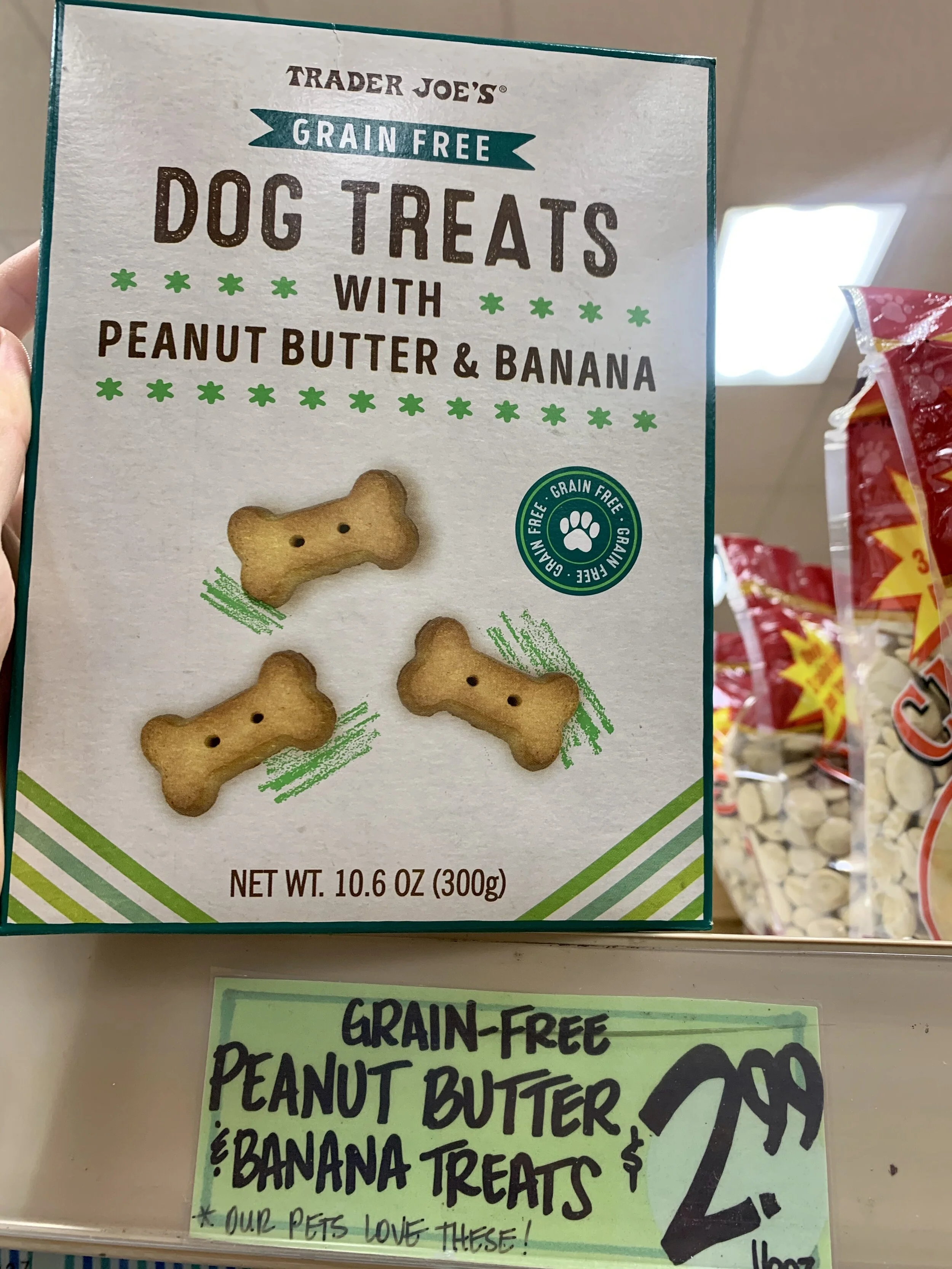 FREE Shipping on orders over 25 shipped by Amazon. Trader Joes Premium Natural Peanut Butter Flavor Dog Treats are made with all natural flavors and contain no preservatives. Trader Joes - Grain Free Dog Treats with Peanut Butter Banana NET WT 106 OZ 300g.